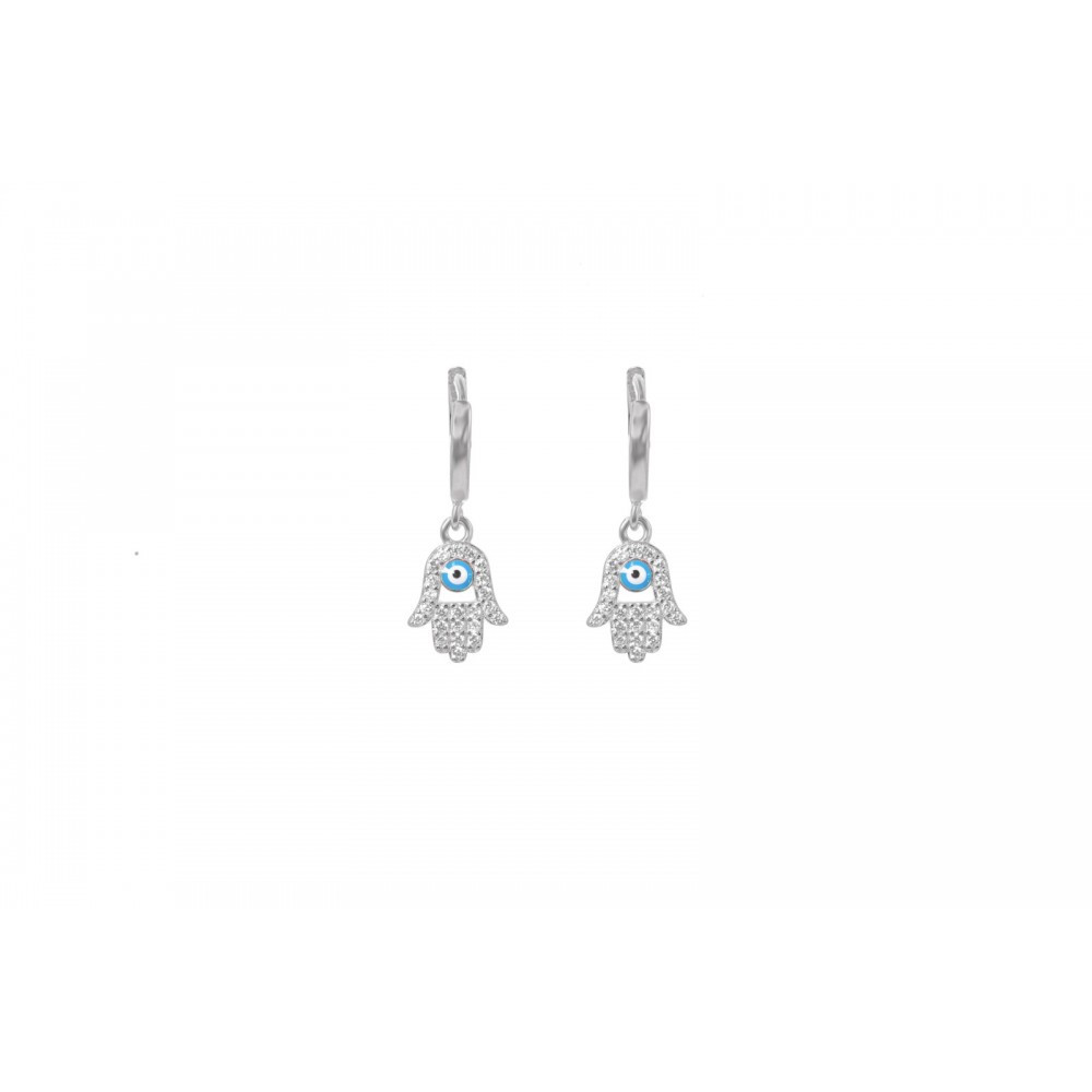 Ασημένιοι Κρίκοι με Κρεμαστό Μάτι της Φατίμα