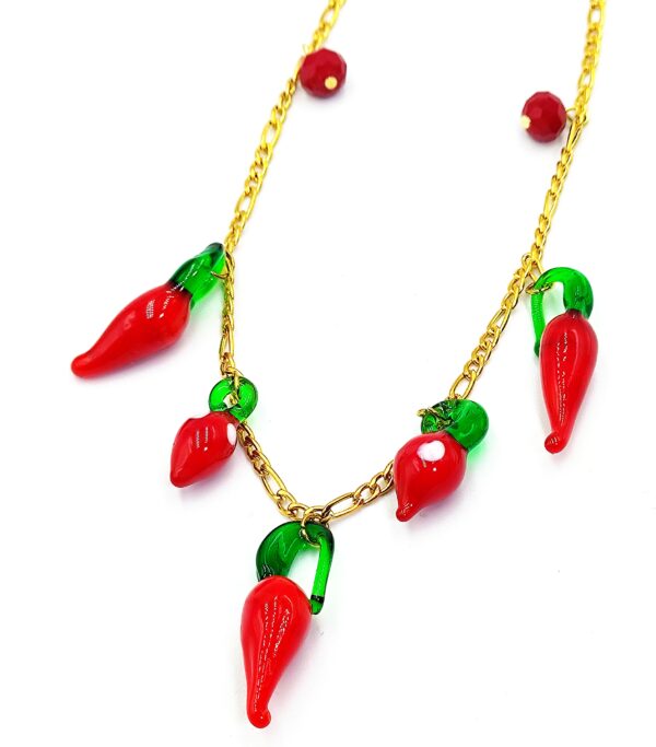 Ατσάλινο κολιέ με επίχρυση αλυσίδα & γυάλινα στοιχεία Πιπεριές.