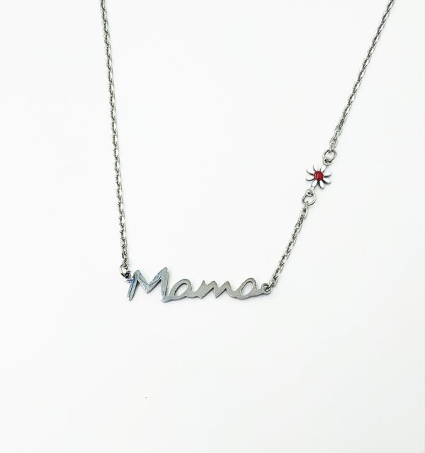 Ατσάλινο κολιέ αλυσίδα με λουλούδι & Μαμά.