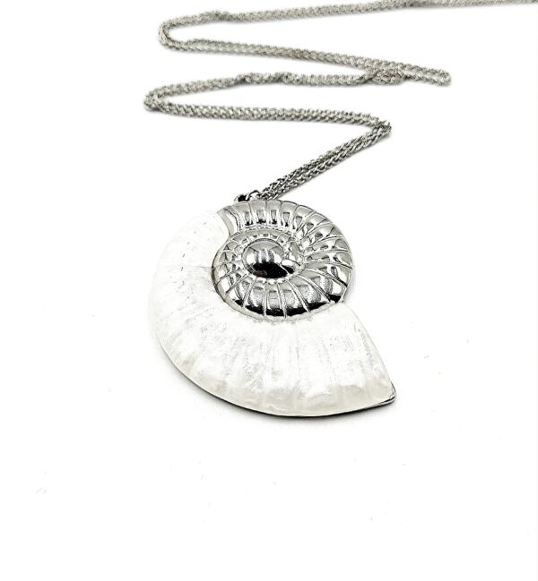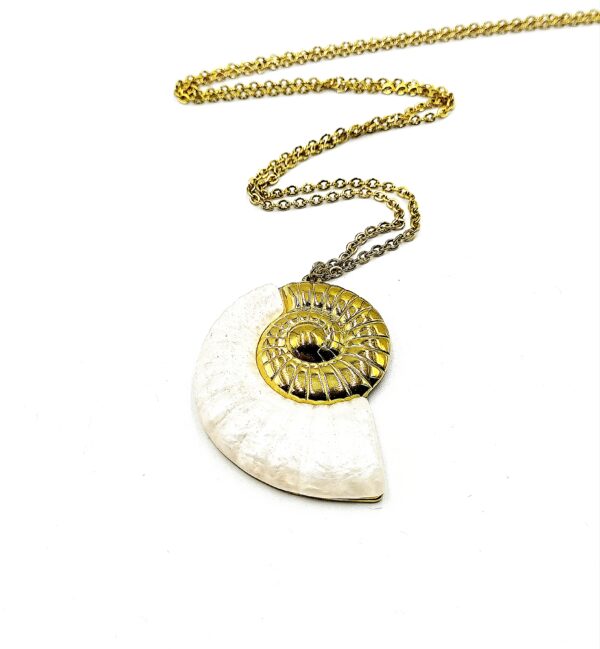 Ατσάλινο μακρύ κολιέ με αλυσίδα & κοχύλι σε ασημί & χρυσό χρώμα.