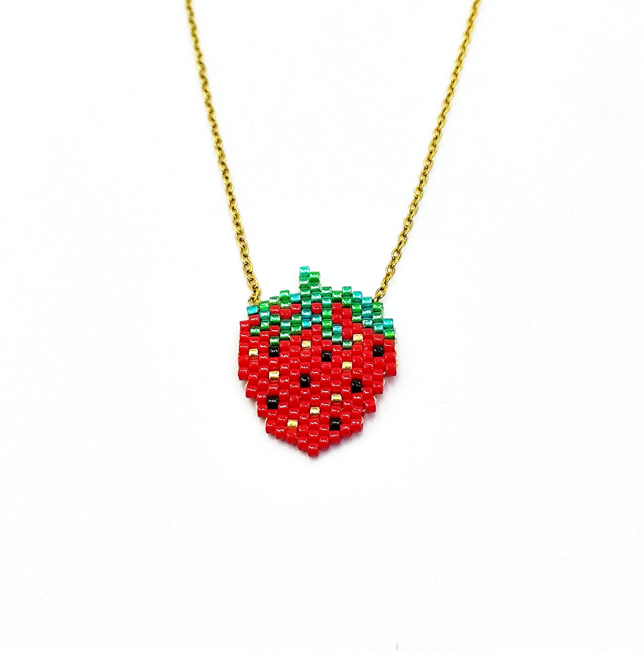Ατσάλινο κολιέ με αλυσίδα και στοιχείο Φράουλα τύπου μιγιούγκι.