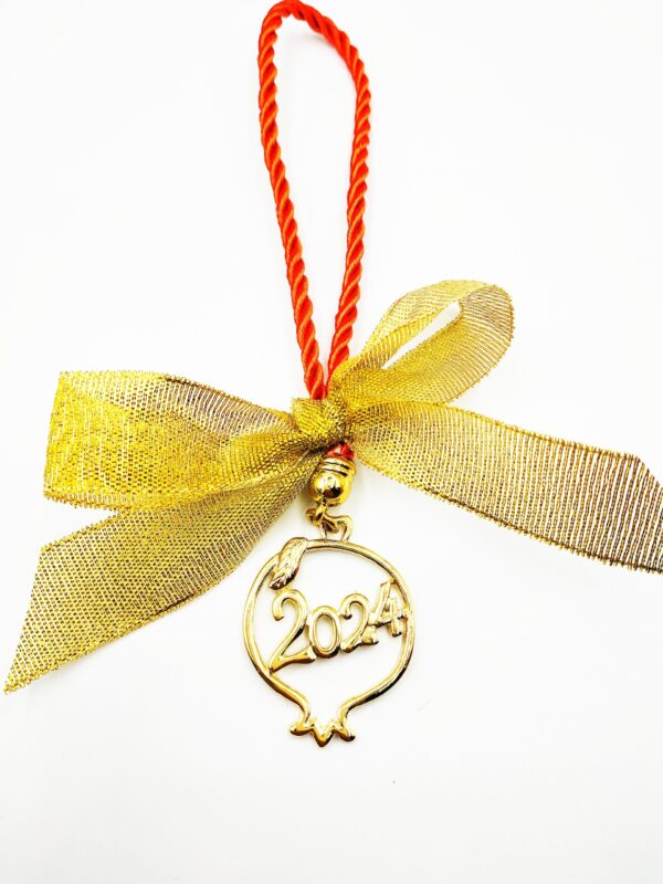 Διακοσμητικό κρεμαστό γούρι 21cm , 2024 με κορδόνι & επίχρυσο ρόδι.