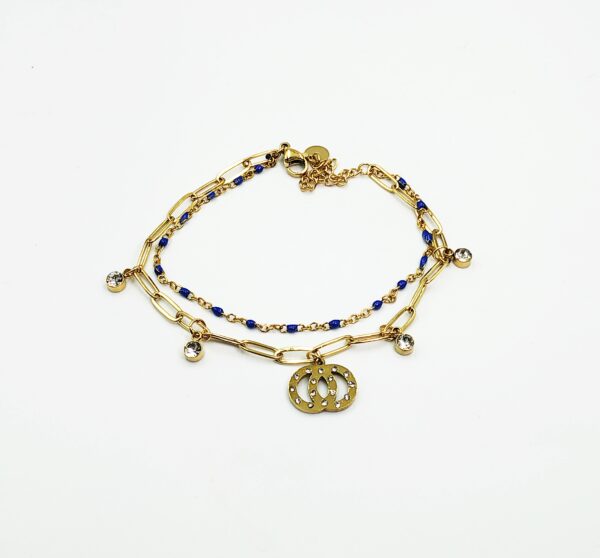 Διπλό Ατσάλινο βραχιόλι με αλυσίδα , ζιρκόν & μπλε στοιχεία, επιχρυσωμένο.