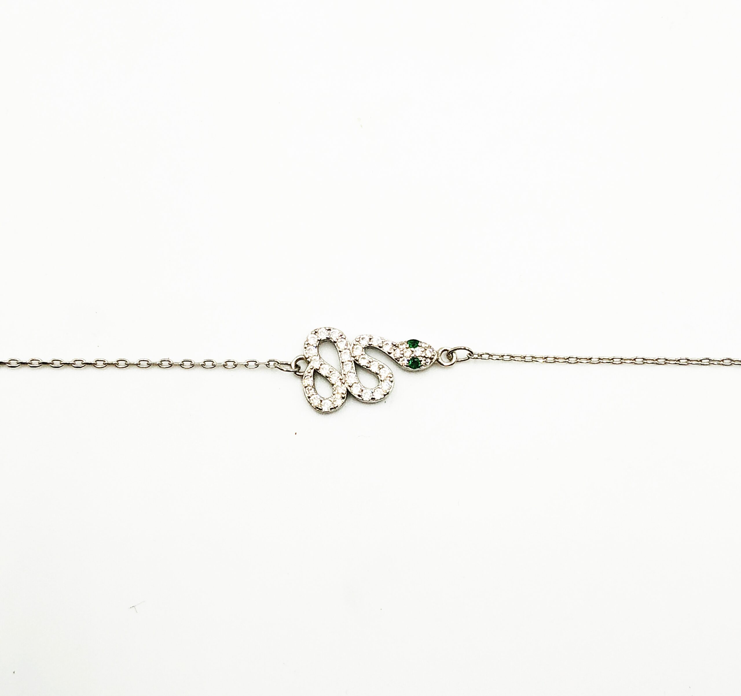 Βραχιολάκι Αλυσίδα με φίδι & ζιργκον από επιπλατινωμένο ασήμι 925.