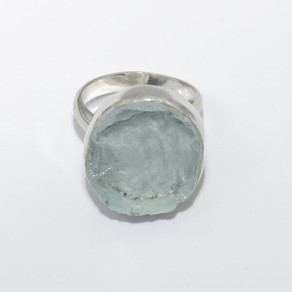 Χειροποίητο ανοιγόμενο ασημένιο δαχτυλίδι με Aquamarine πέτρα και ασημένιο καστόνι.