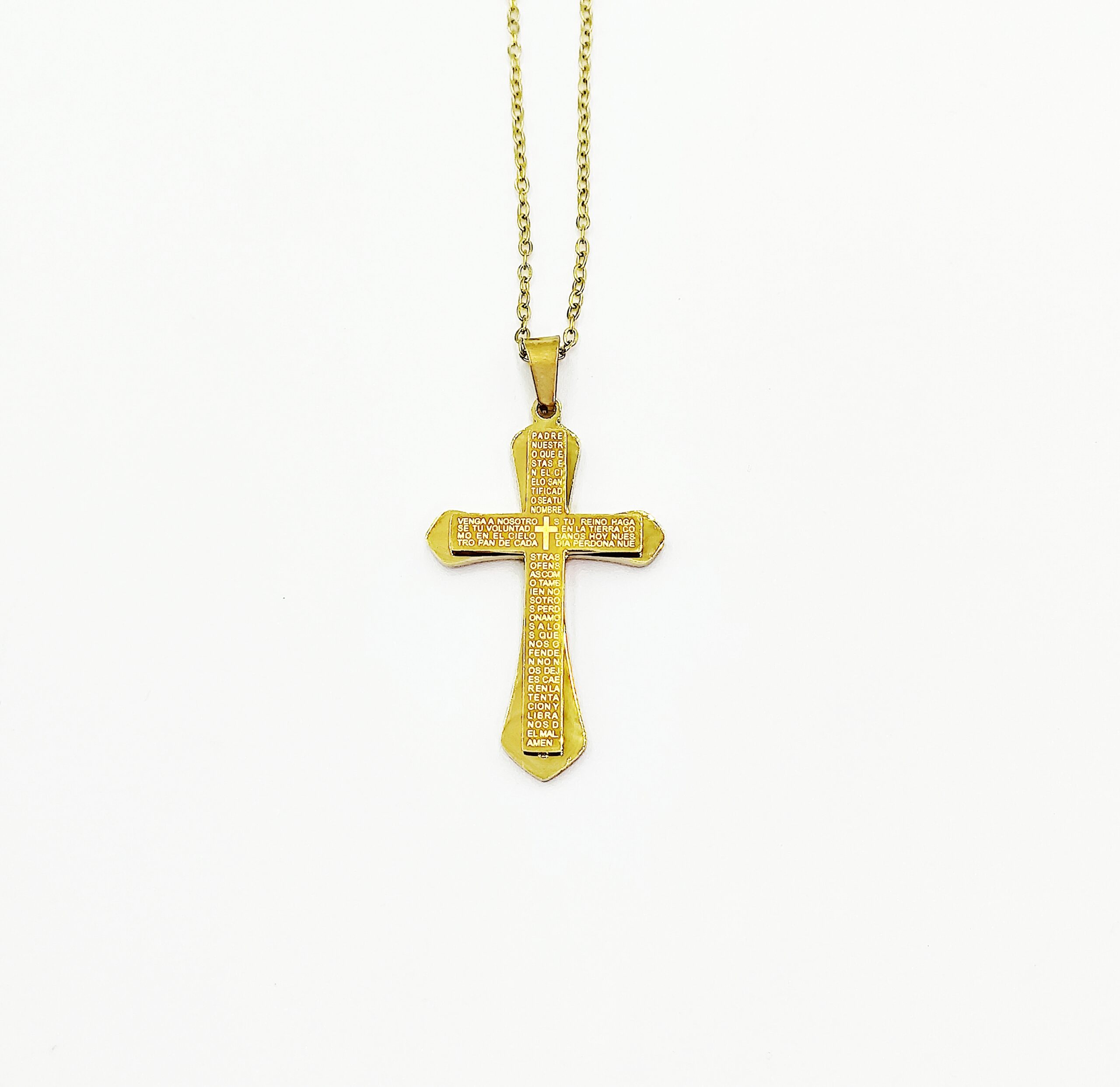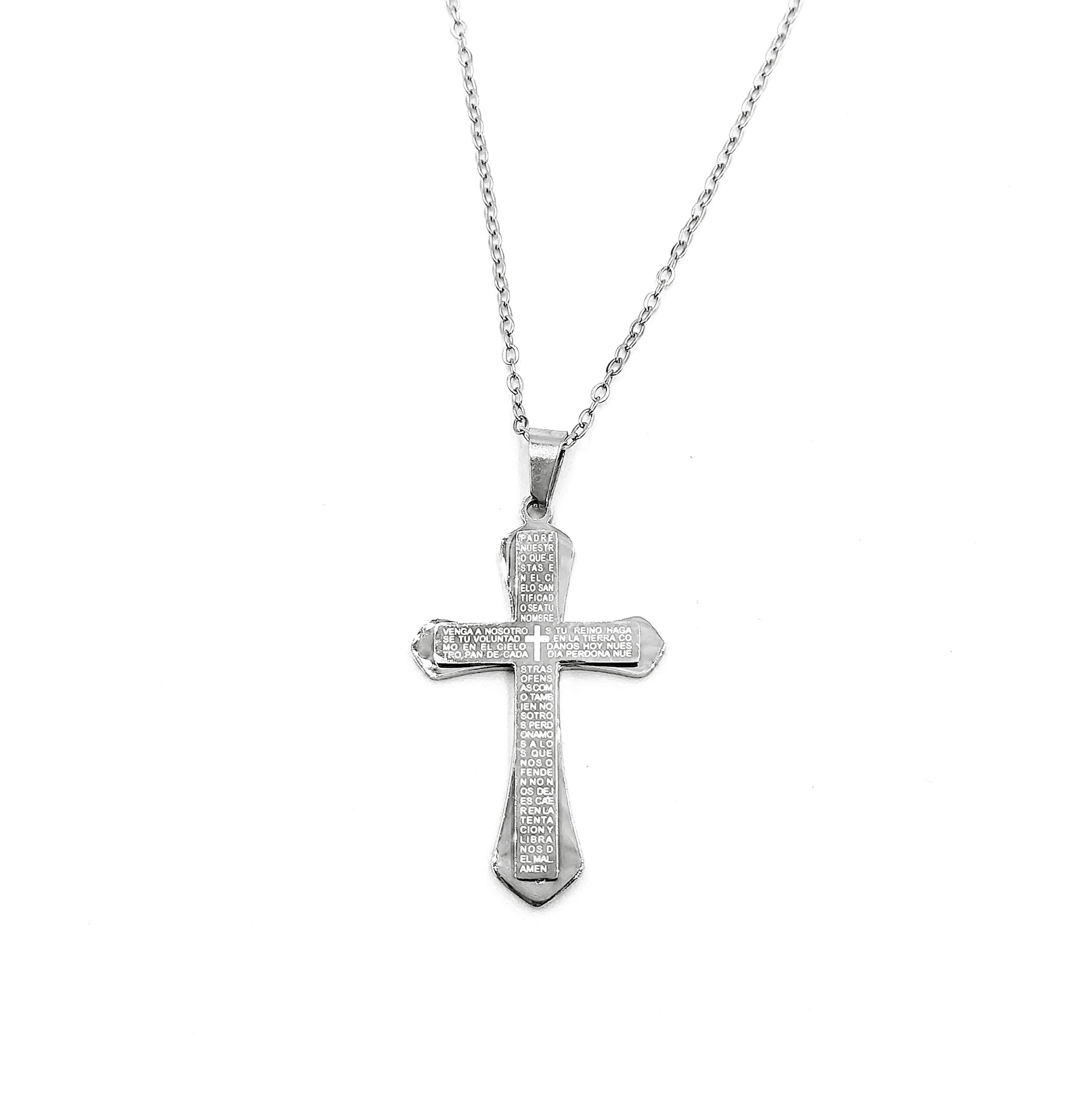 Ατσάλινο κολιέ αλυσίδα με Σταυρό & χαραγμένες προσευχές.