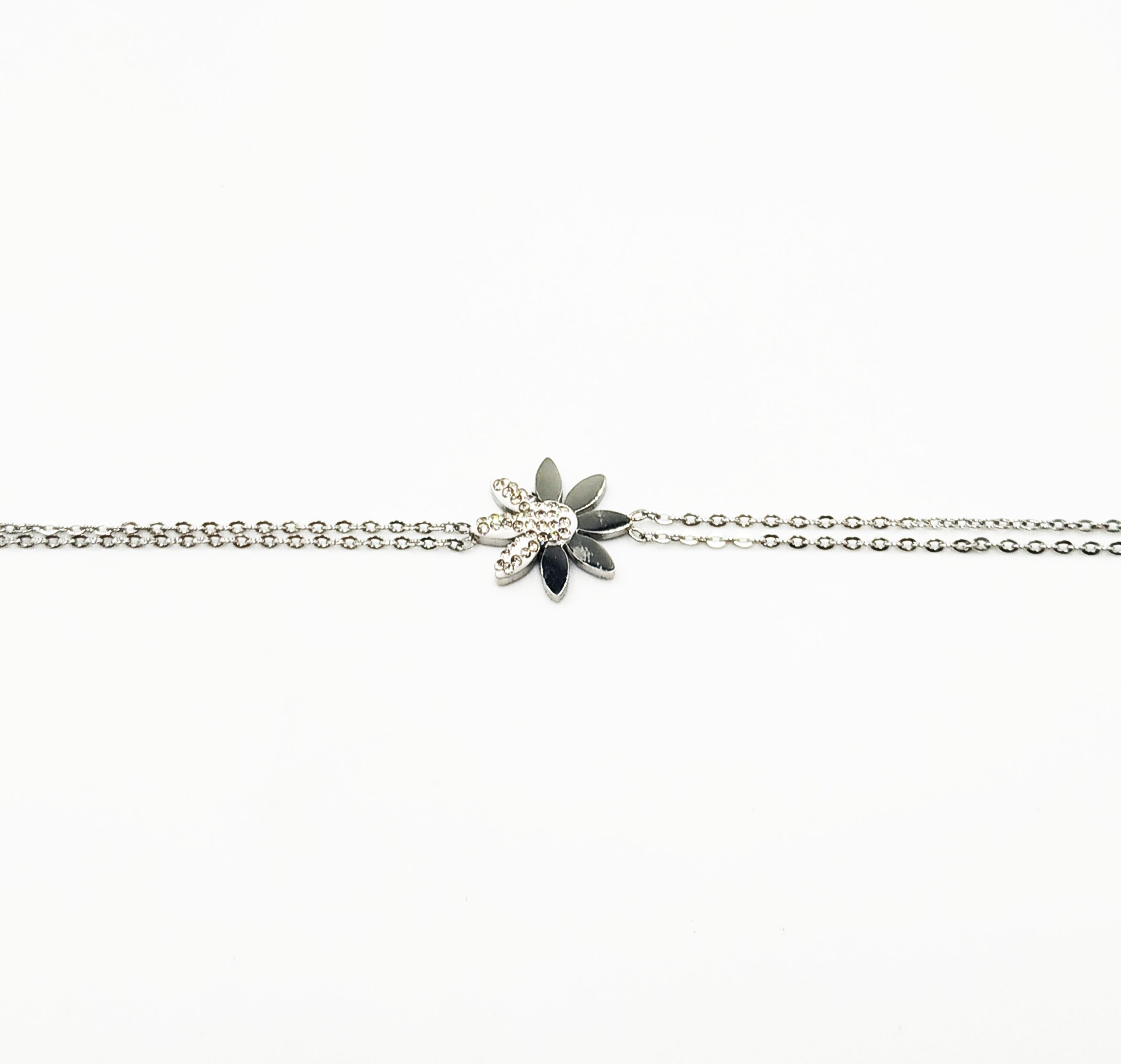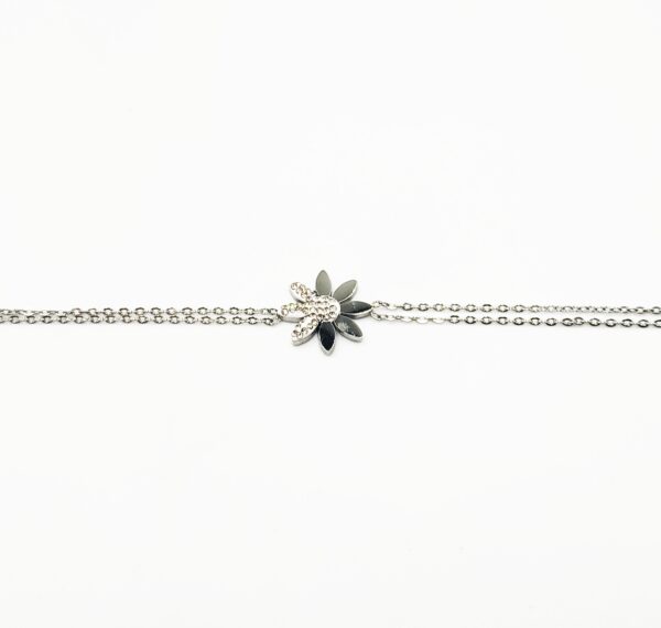 Ατσάλινο βραχιόλι με διπλή αλυσίδα και ατσάλινο λουλούδι.