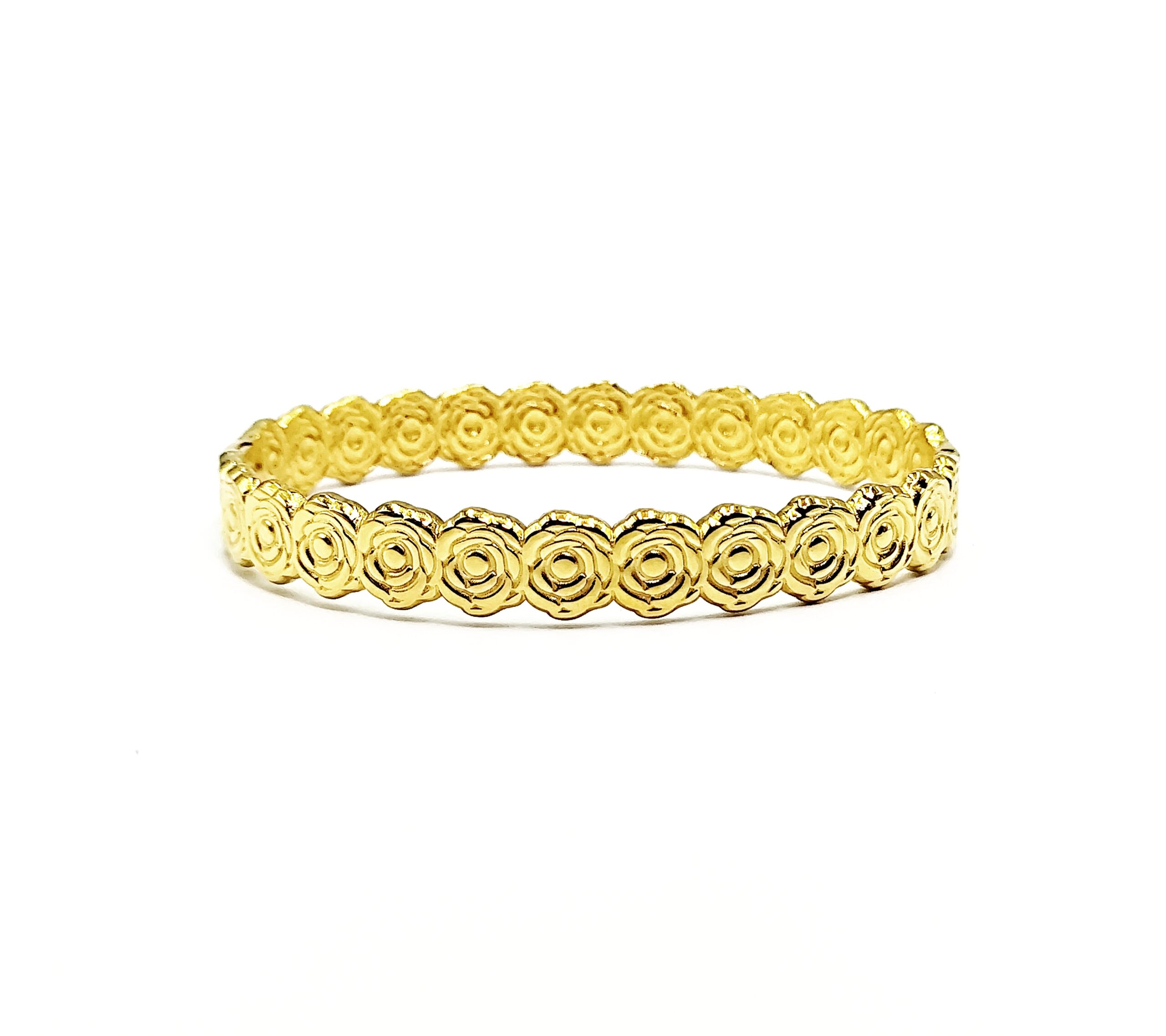 Ατσάλινο βραχιόλι – χειροπέδα, επιχρυσωμένη με λουλουδάτο σχέδιο.