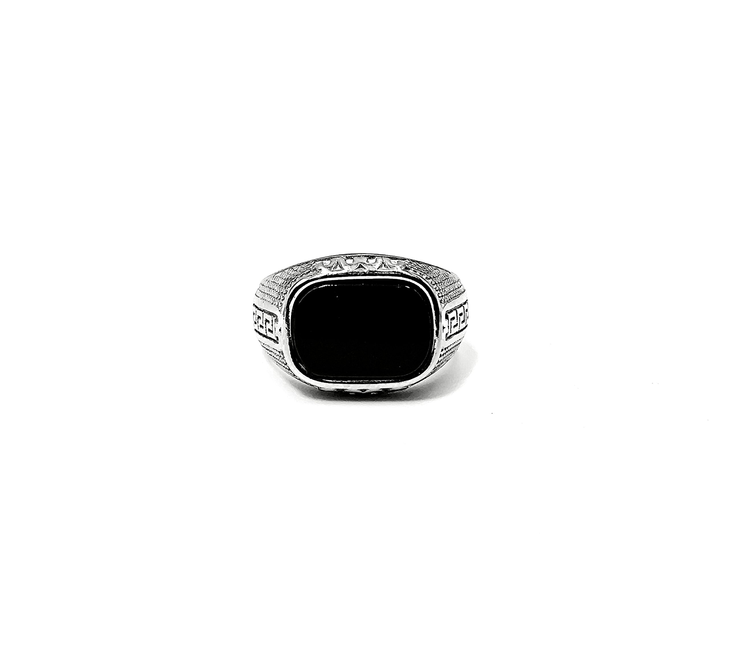 Ατσάλινο ανδρικό δαχτυλίδι με μαύρη πέτρα.