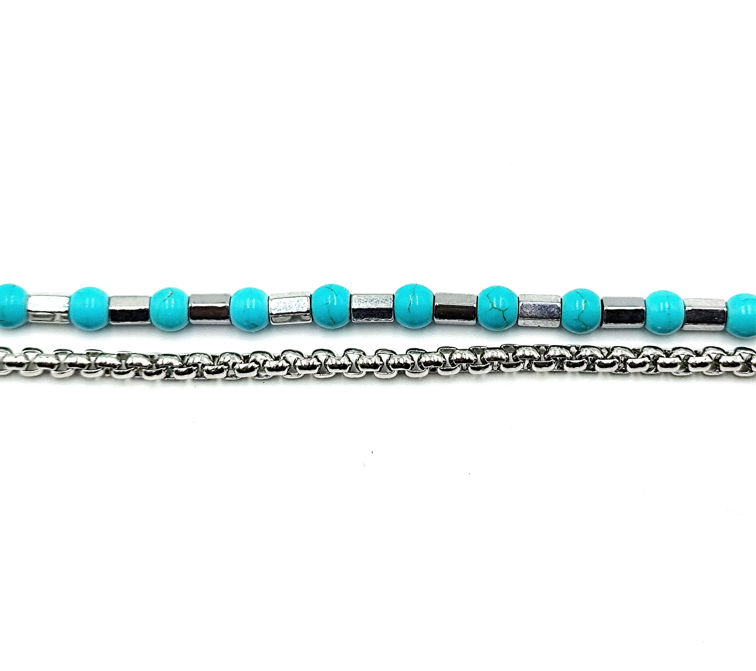 Ατσάλινο διπλό βραχιόλι με αλυσίδα και τικουάζ.