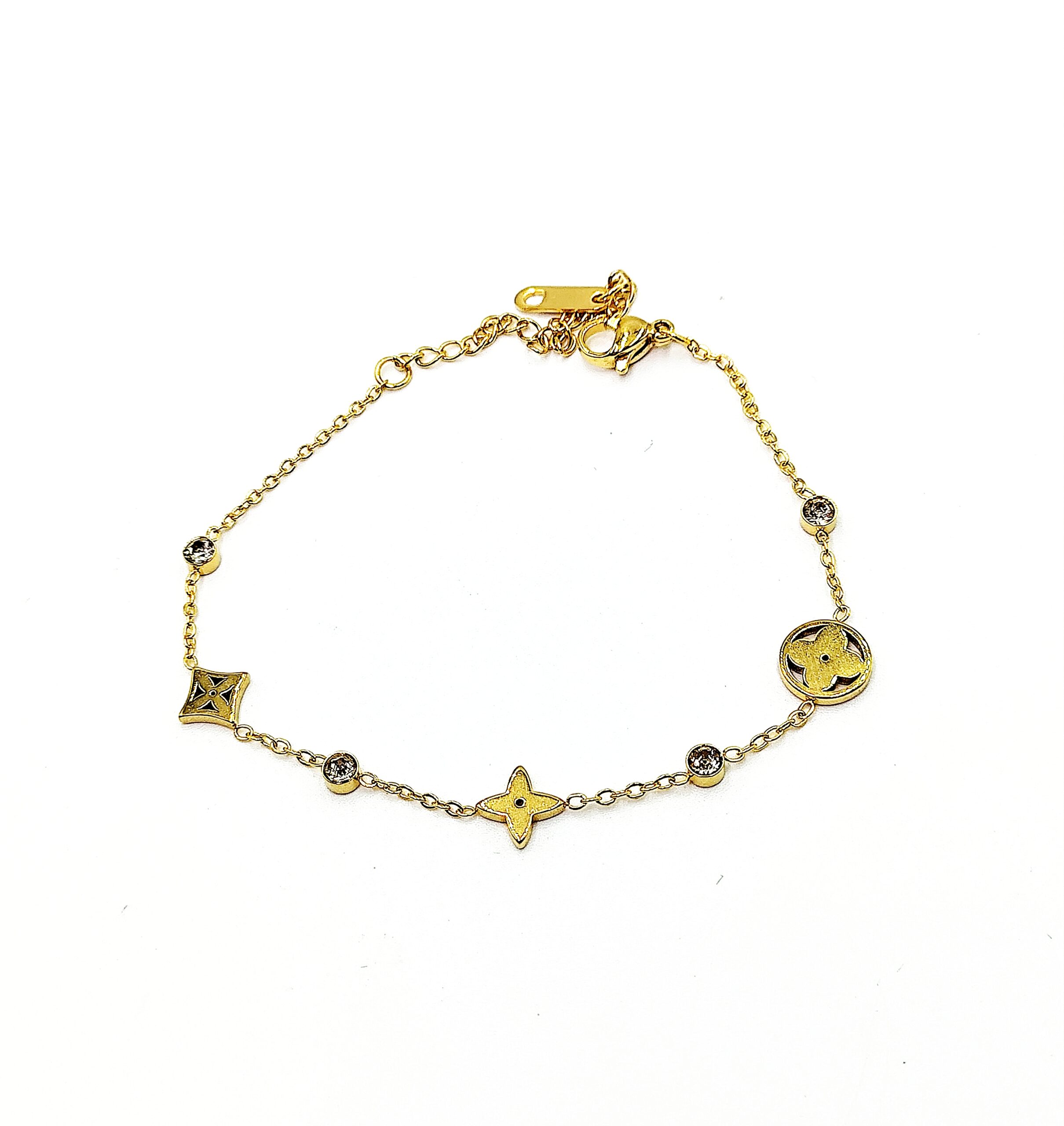 Βραχιόλι αλυσίδα με σταυρούς & στρας από επιχρυσωμένο ατσάλι.