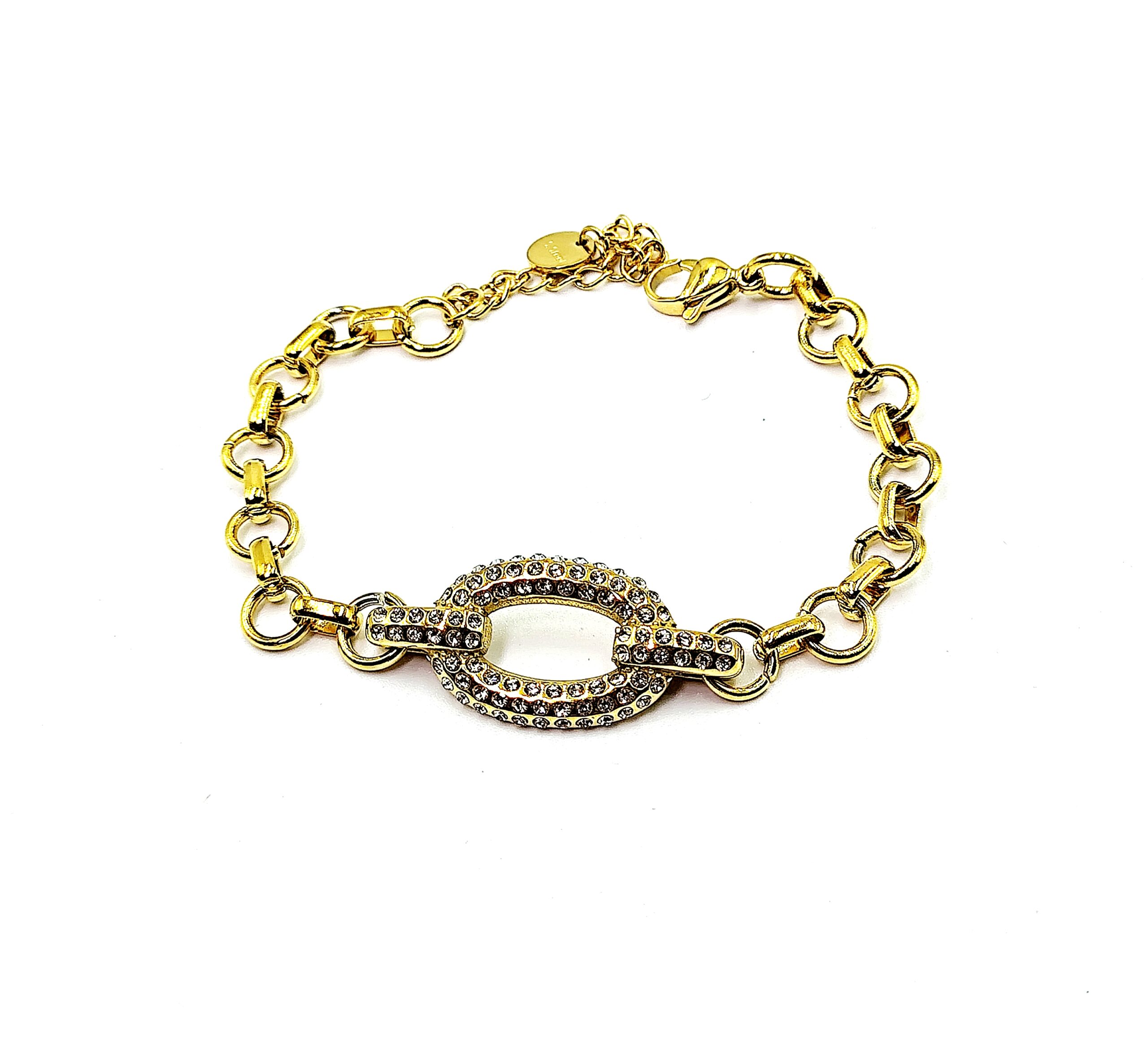 Βραχιόλι αλυσίδα με στρας από επιχρυσωμένο ατσάλι.