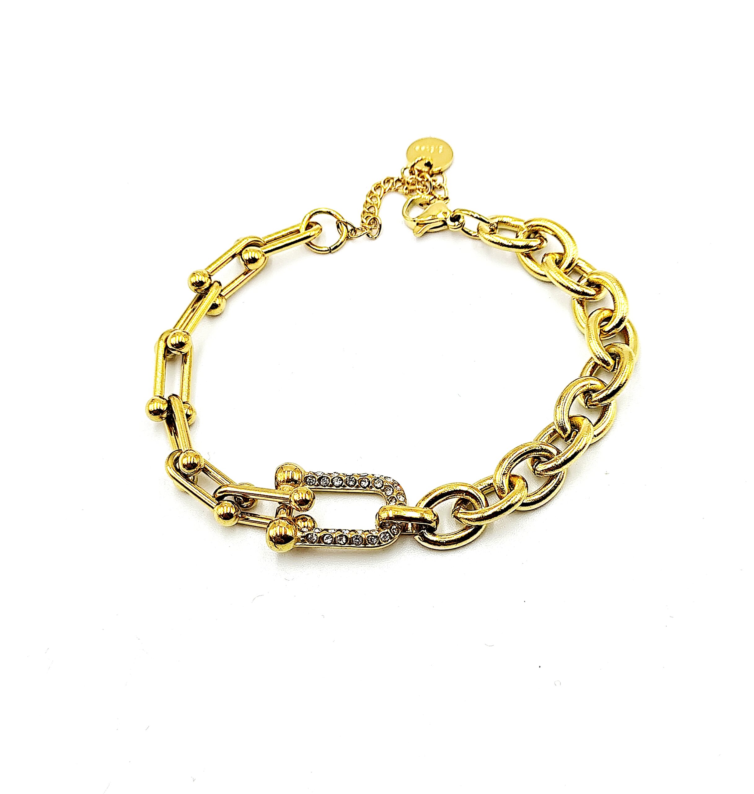 Βραχιόλι αλυσίδα με στρας από επιχρυσωμένο ατσάλι.