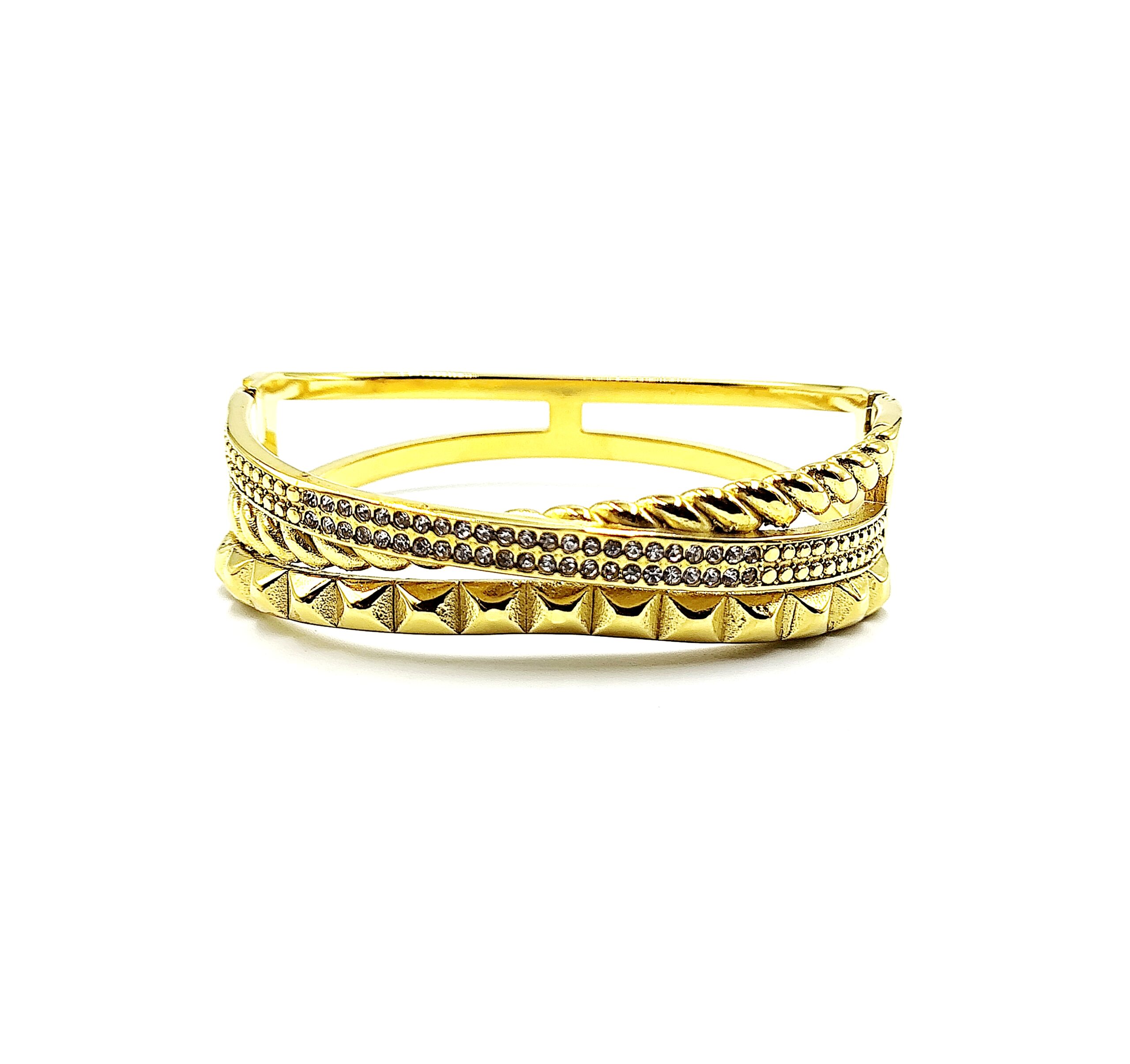 Ατσάλινο επίχρυσο βραχιόλι χειροπέδα με στρας.