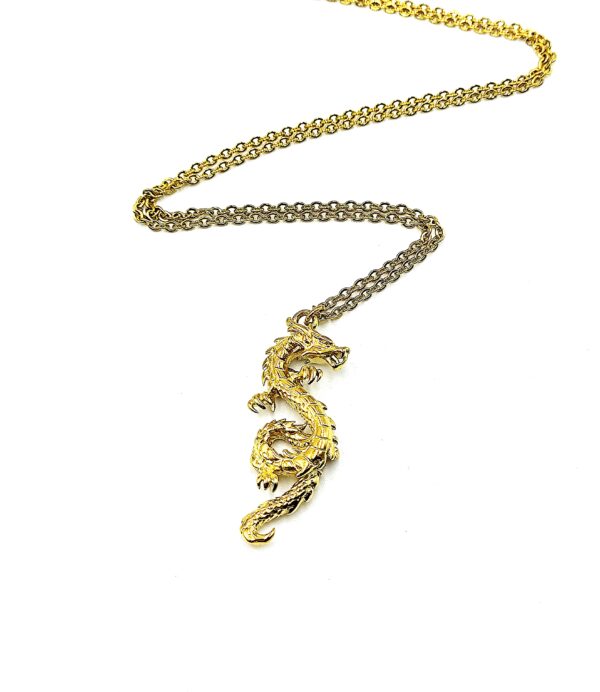 Ατσάλινο Επίχρυσο Κολιέ με Δράκο
