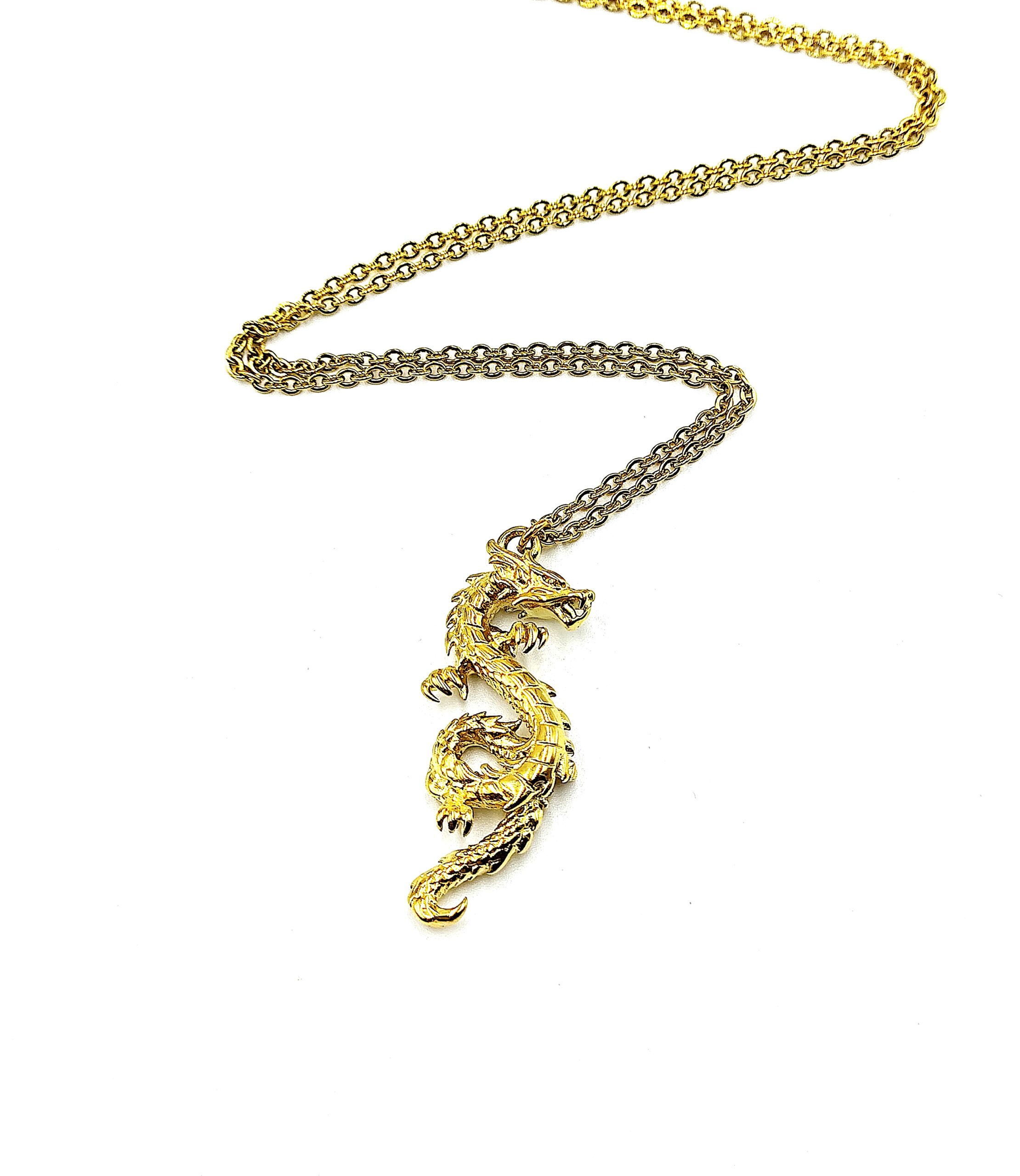 Ατσάλινο επίχρυσο κολιέ με αλυσίδα & δράκο. Μήκος 60cm.