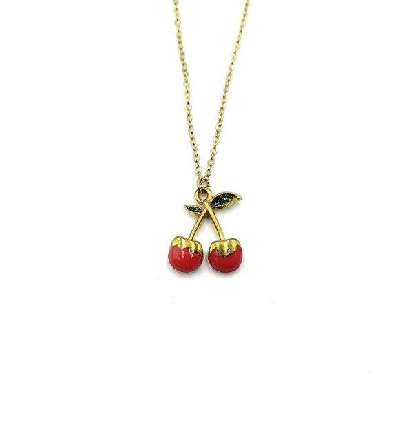 Κρεμαστό κολιέ αλυσίδα με κεράσι από επιχρυσωμένο ατσάλι.