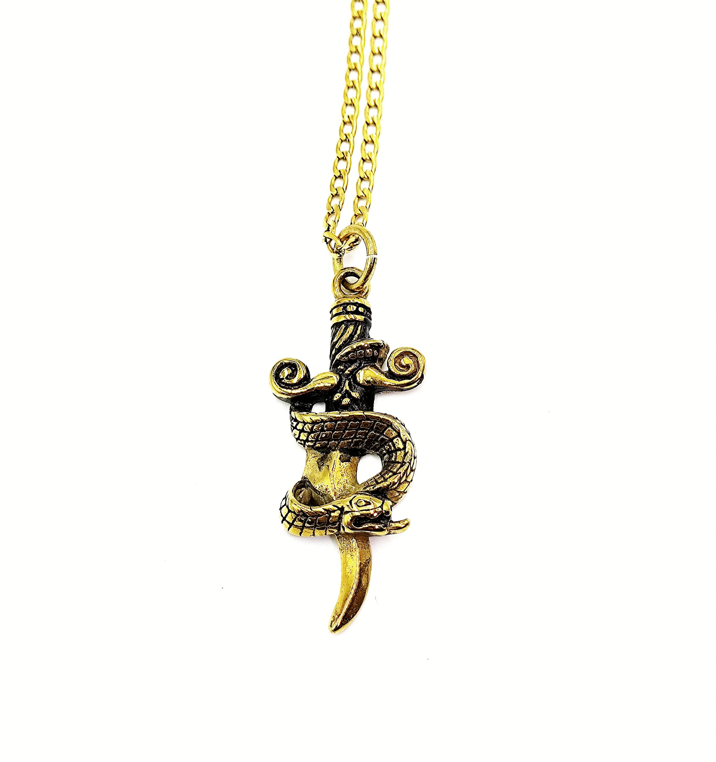 Ατσάλινο Επίχρυσο Κολιέ Σπαθί & Φίδι