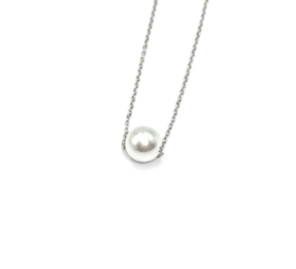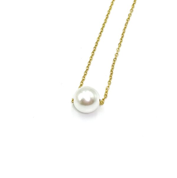 Ατσάλινο κολιέ Αλυσίδα με πέρλα, σε ασημί & χρυσό.