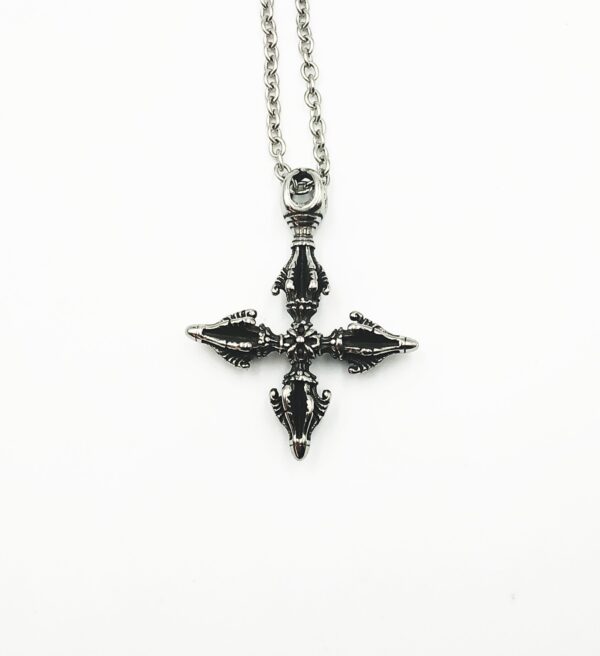 Σκαλιστός Θιβετιανός σταυρός από ανοξείδωτο ατσάλι με αλυσίδα 60cm.