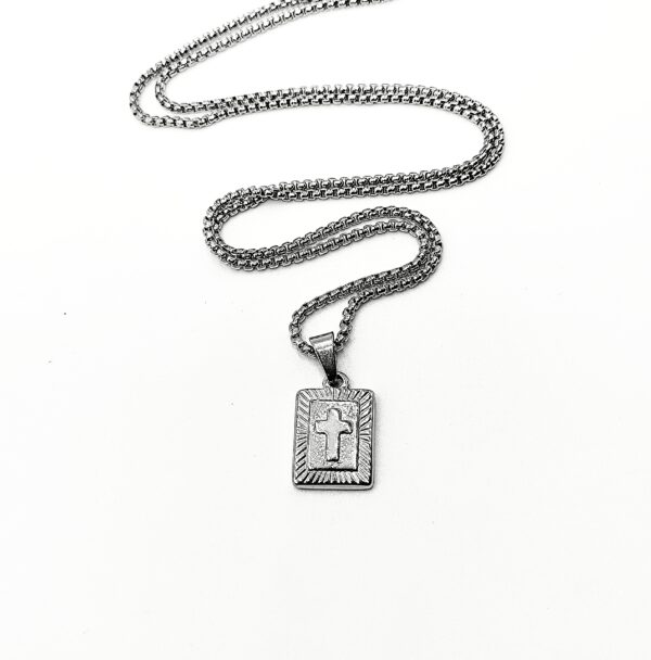 Ατσάλινο κολιέ αλυσίδα με εικόνισμα Σταυρού, σε ασημί & μαύρο χρώμα.
