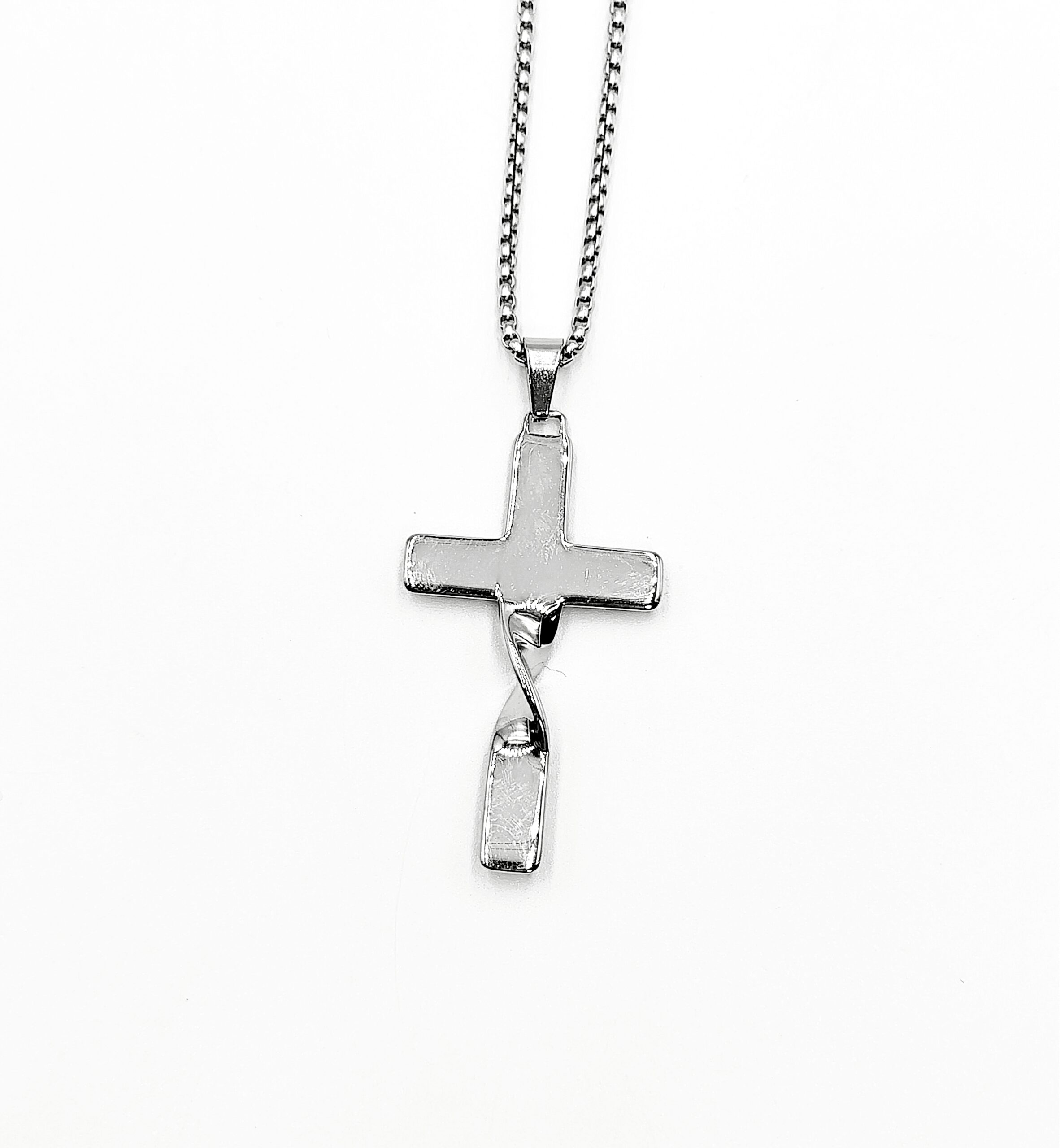Ατσάλινο κολιέ αλυσίδα με στριφτό Σταυρό.