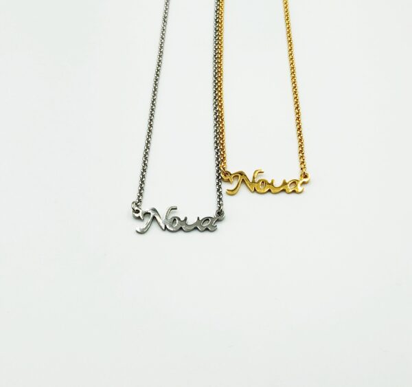 Ατσάλινο κολιέ με αλυσίδα και ατσάλινο μοτίφ Νονά, σε λευκό & χρυσό χρώμα.