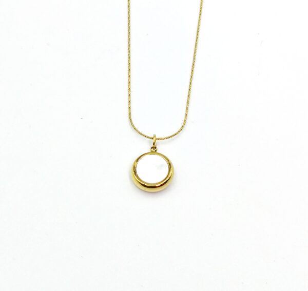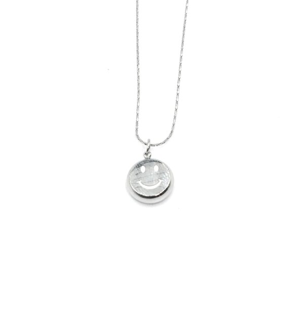 Ατσάλινο κολιέ με αλυσίδα και μοτίφ 2 όψεων με φίλντισι & smiley. Διατίθεται σε ασημί & χρυσό χρώμα.