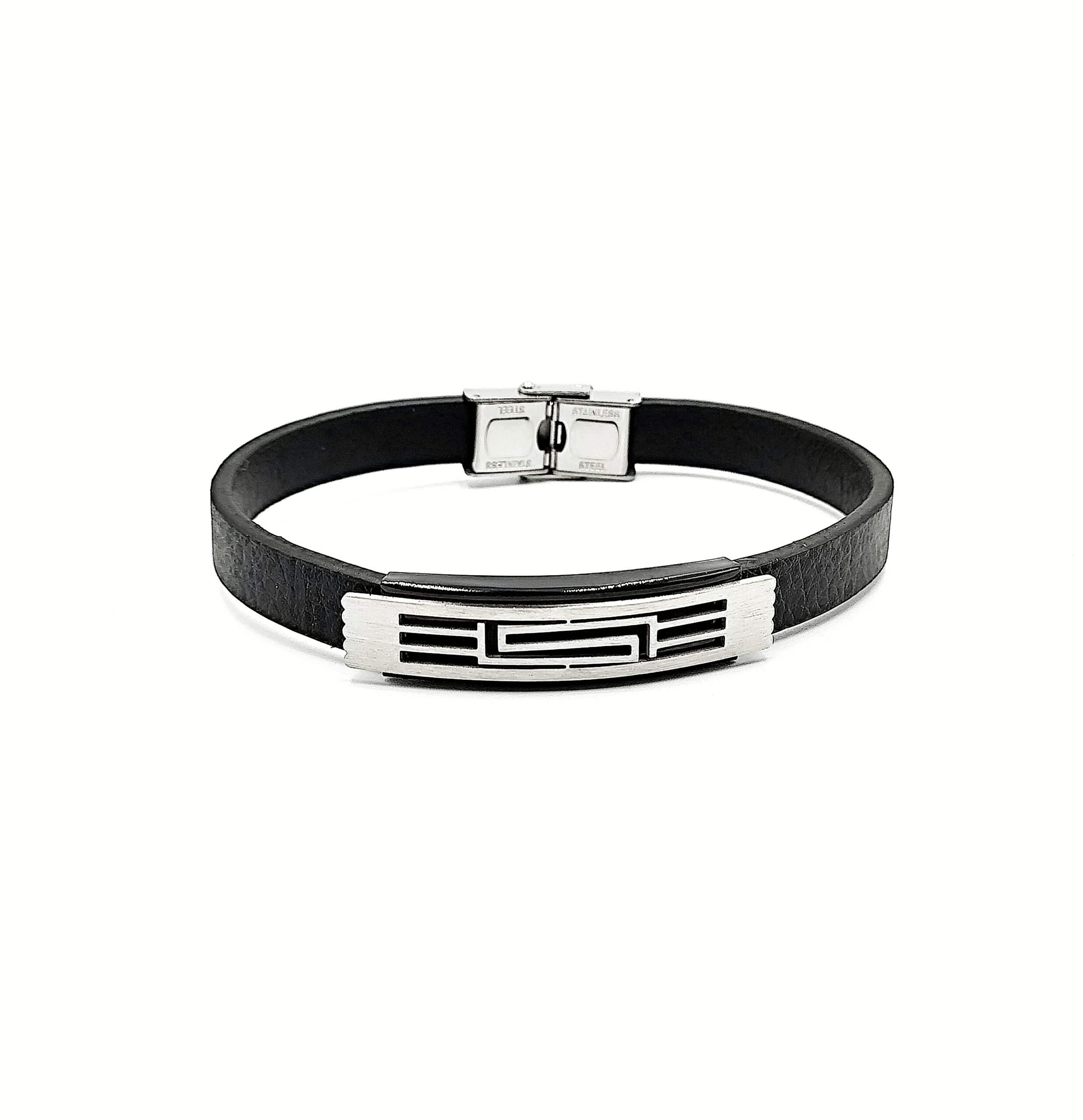 Βραχιόλι με ατσάλι – δέρμα & ατσάλινο κούμπωμα.