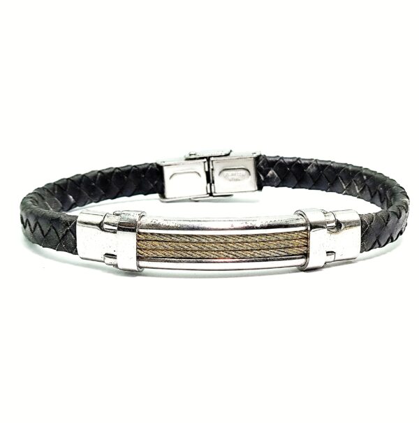 Ανδρικό δερμάτινο βραχιόλι με ατσάλινα στοιχεία & κούμπωμα.