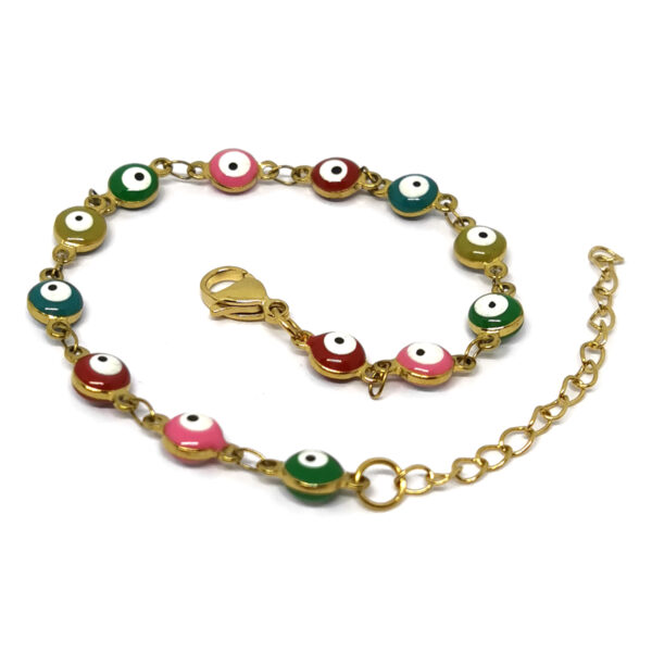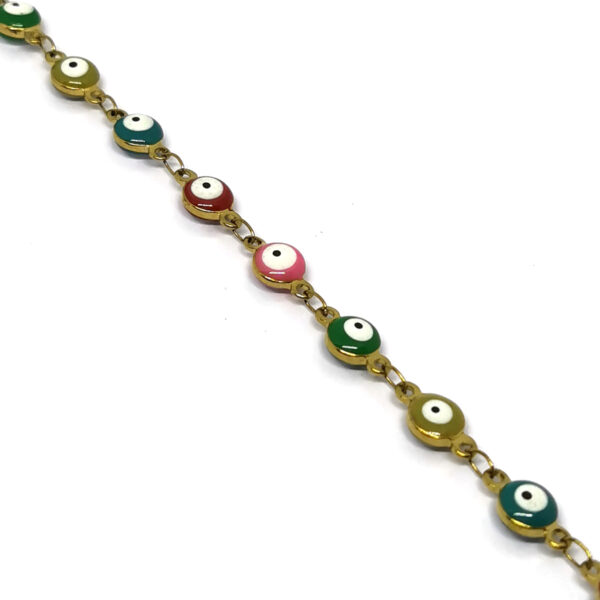 Ατσάλινο βραχιόλι με πολύχρωμα μάτια, επιχρυσωμένο.