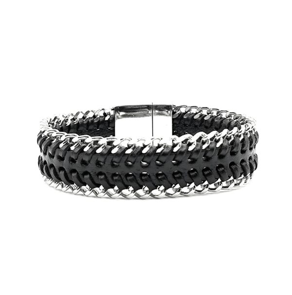 Δερμάτινο Βραχιόλι με Ατσάλινη Πλεκτή Αλυσίδα