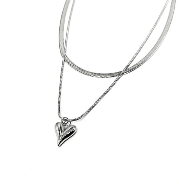 Διπλό Κολιέ με Πλακέ Αλυσίδα & Καρδιά