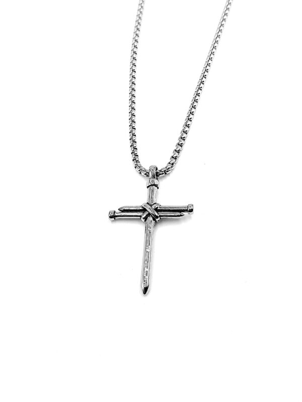 Ατσάλινο κολιέ αλυσίδα με σταυρό καρφιά 5.5 x 3.5cm και αλυσίδα μήκους 60cm.