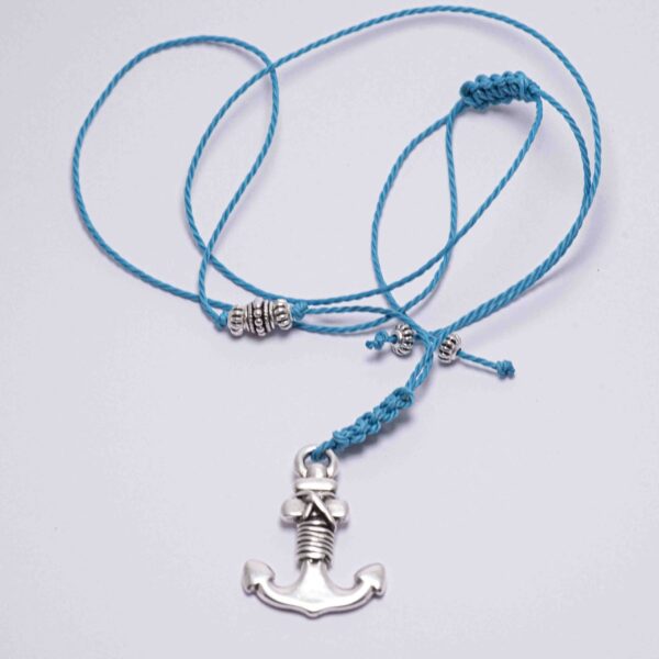 Κολιέ με γαλάζιο κορδόνι και άγκυρα από ζάμα.