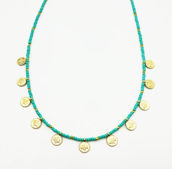 Χειροποίητο κολιέ με ψιλή χάντρα & μπρούτζινα στοιχεία.