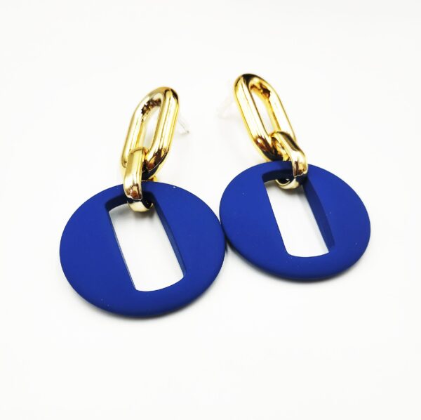 Κρεμαστά σκουλαρίκια από πλαστικό, με χρυσό & μπλε χρώμα  για ιδιαίτερα ντυσίματα.