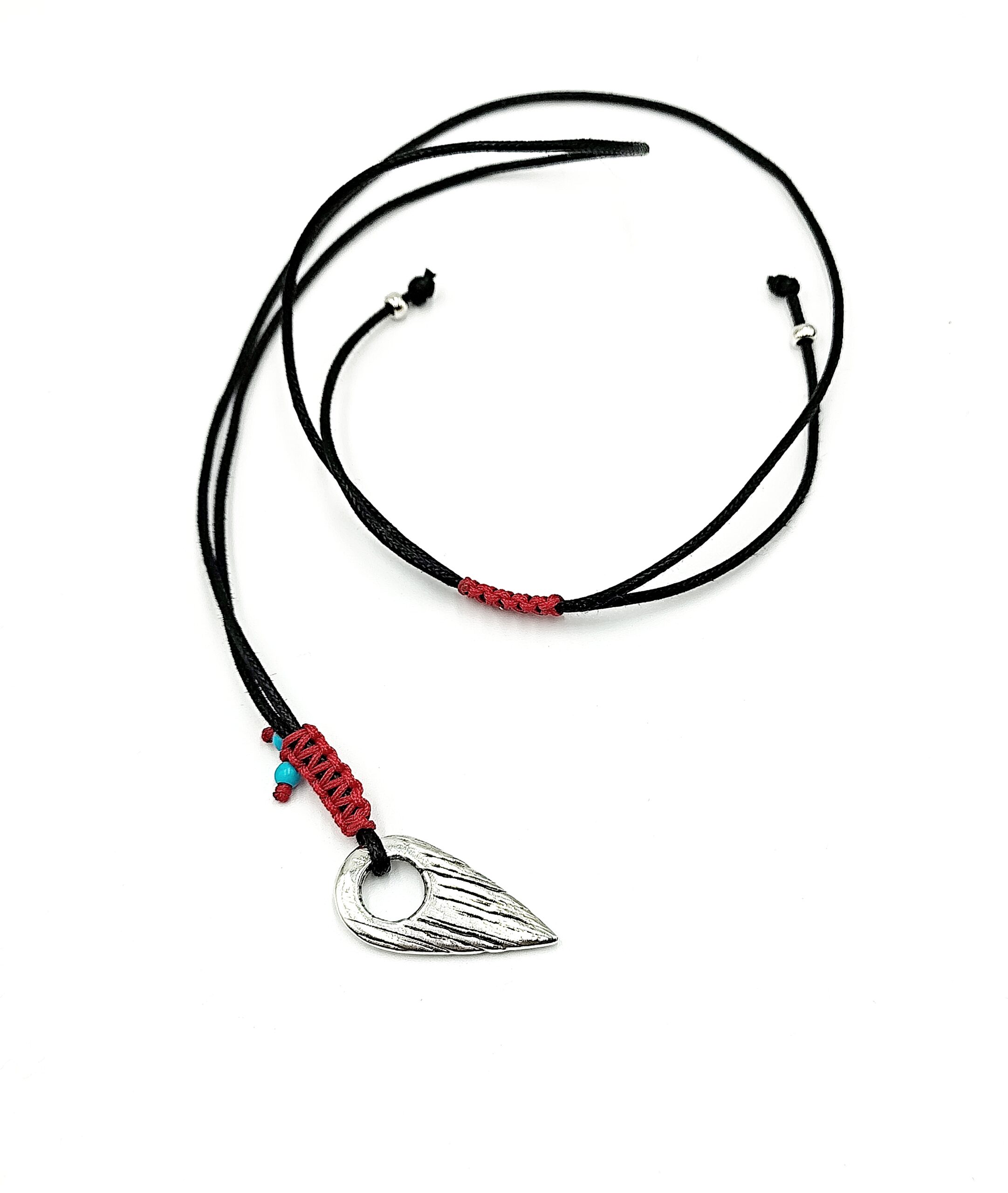 Μακρύ κολιέ με κορδόνι & ζάμακ στοιχείο.