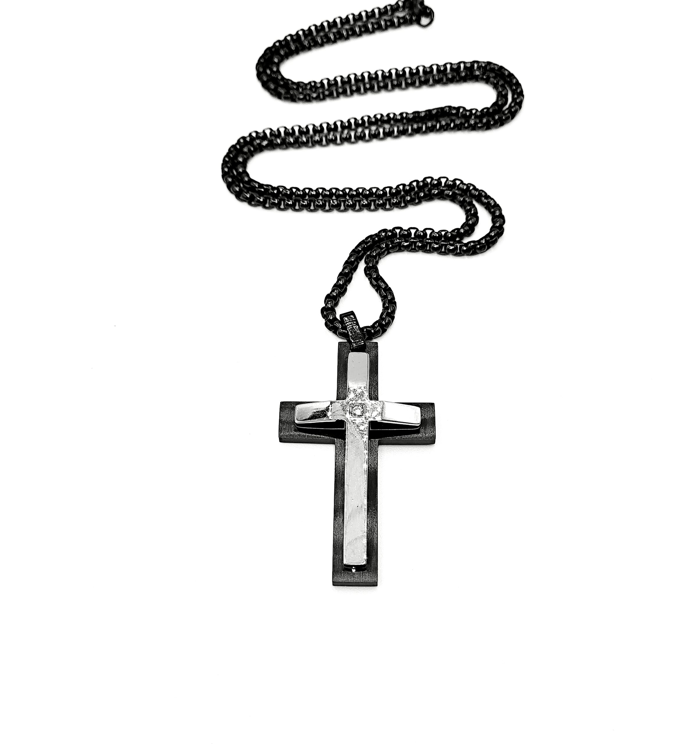 Μαύρο Ατσάλινο κολιέ αλυσίδα με Σταυρό.