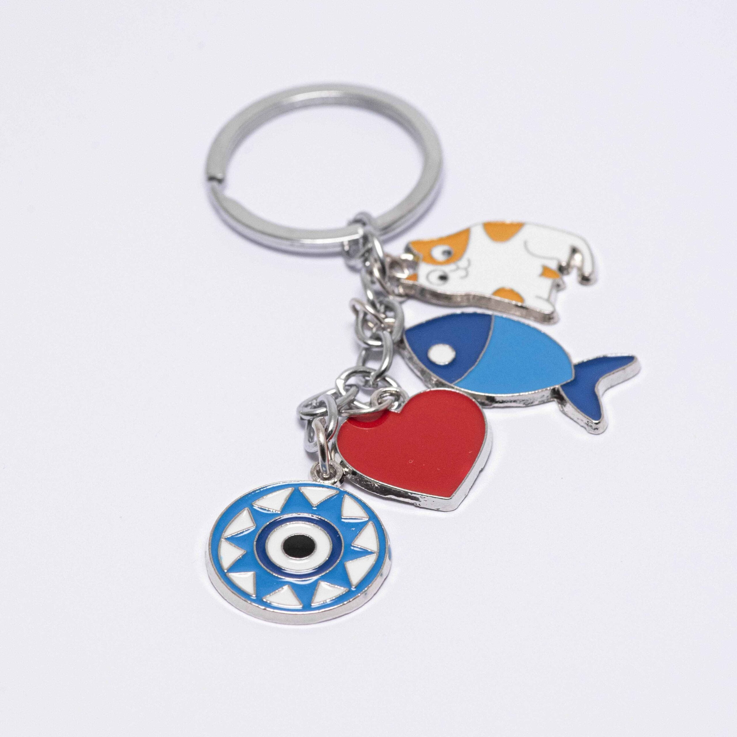Μεταλλικό μπρελόκ με διάφορα μεταλλικά στοιχεία όπως , μάτι, ψάρι, γάτα & καρδιά.