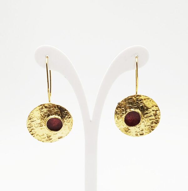 Χειροποίητα σκουλαρίκια απο επιχρυσωμένο ορείχαλκο & μωβ σμάλτο.