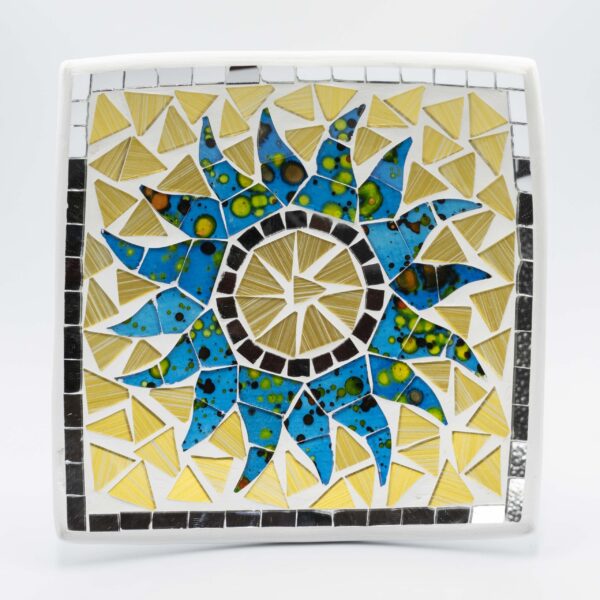 Χειροποίητες γύψινες ψηφιδωτές πιατέλες με τον Ήλιο.