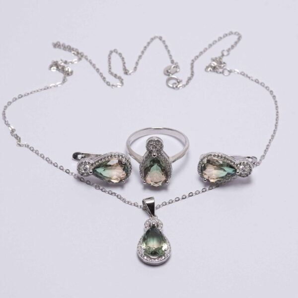 Ασημένιο σετ Κολιέ, Σκουλαρίκια, Δαχτυλίδι με Πράσινο Ζιργκόν. Μια εντυπωσιακή επιλογή για την καθημερινότητα σας καθώς και για την έξοδο σας.