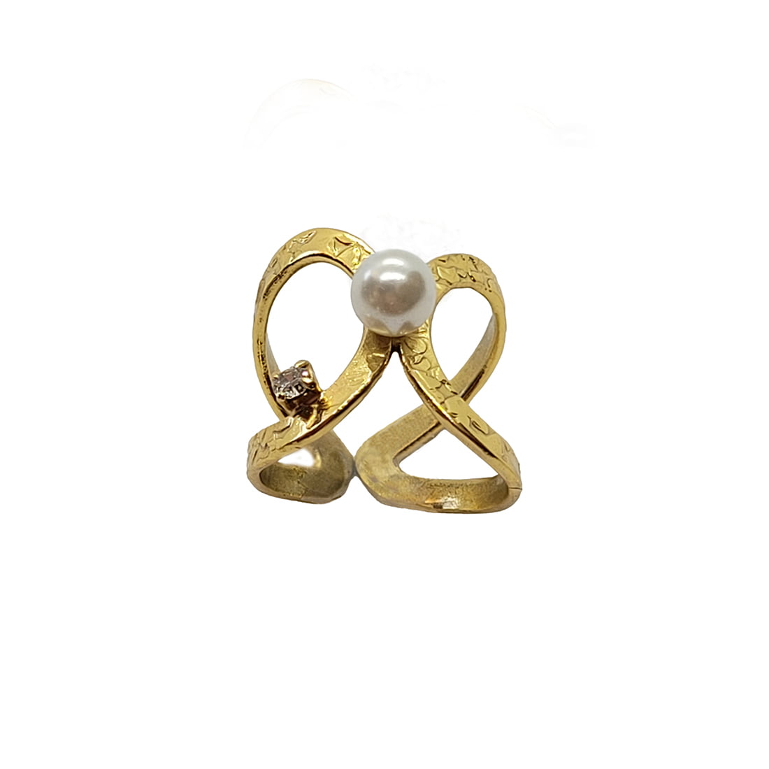 Χειροποίητο Δαχτυλίδι από Ορείχαλκο με Πέρλα & Ζιργκόν.