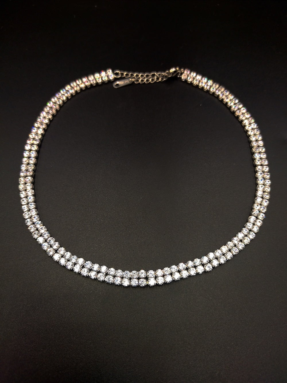 Κολιέ Ριβιέρα από ατσάλι με ζιργκόν και ατσάλινο κούμπωμα. Μήκος 42 εκατοστά με προέκταση.