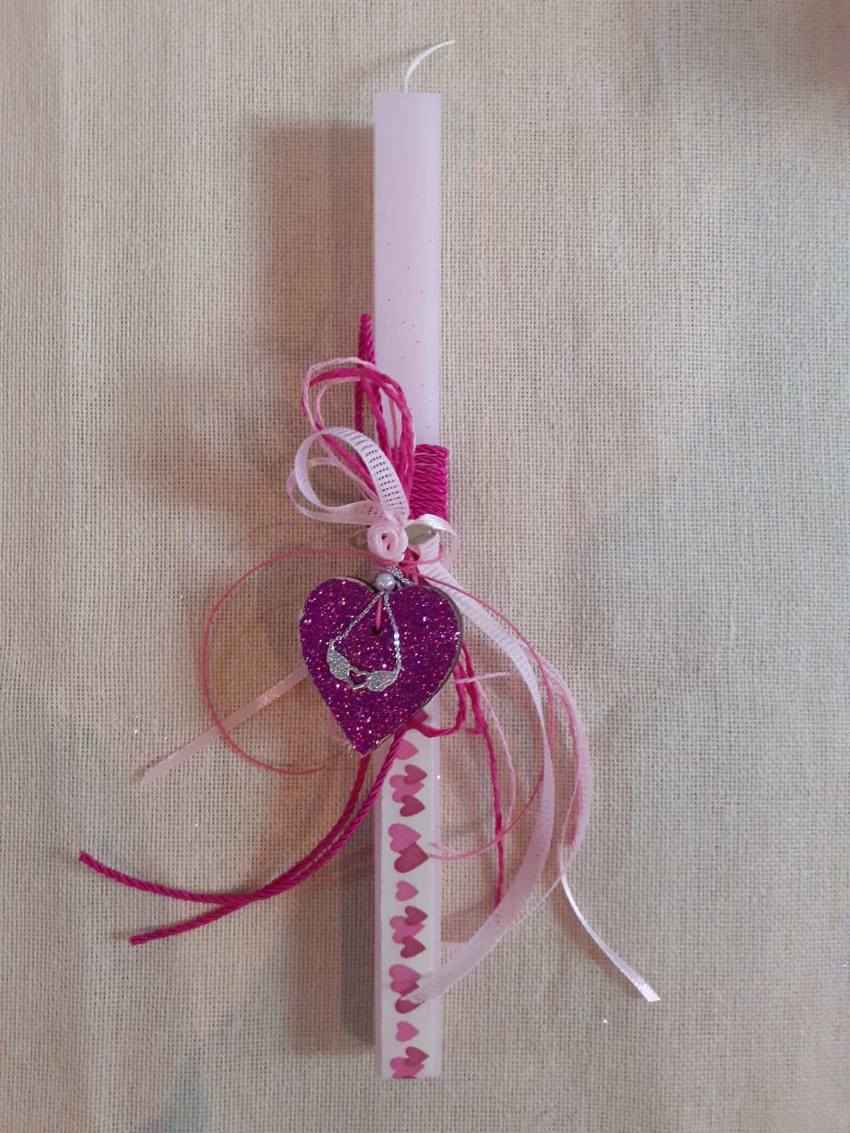 Χειροποίητη πασχαλινή αρωματική λαμπάδα, με καρδιά γκλίτερ και μενταγιόν για κορίτσια & γυναίκες.